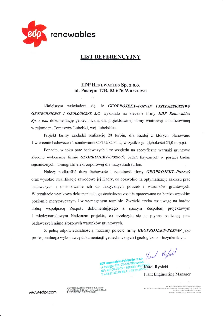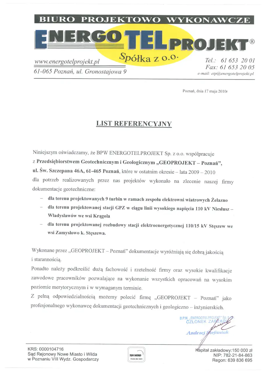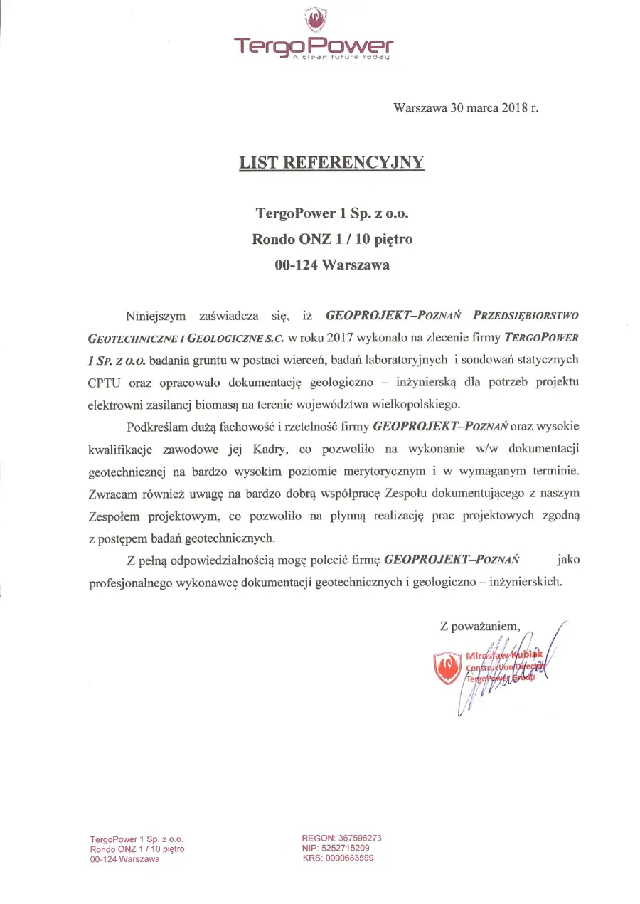Ponadto stale współpracujemy z ekspertami z dziedziny geotechniki z Uniwersytetu im. Adama Mickiewicza w Poznaniu.
