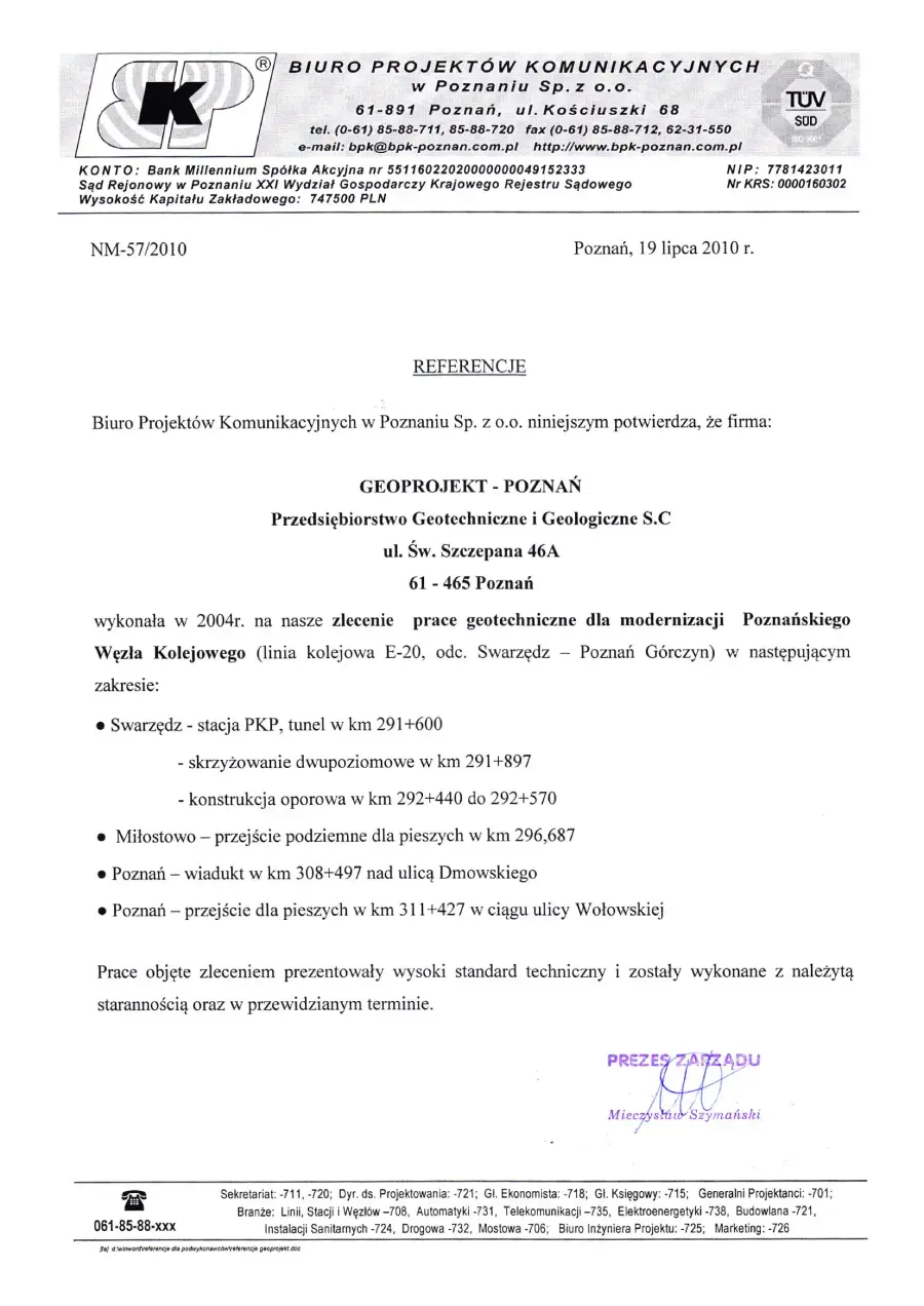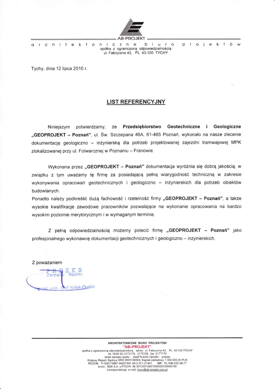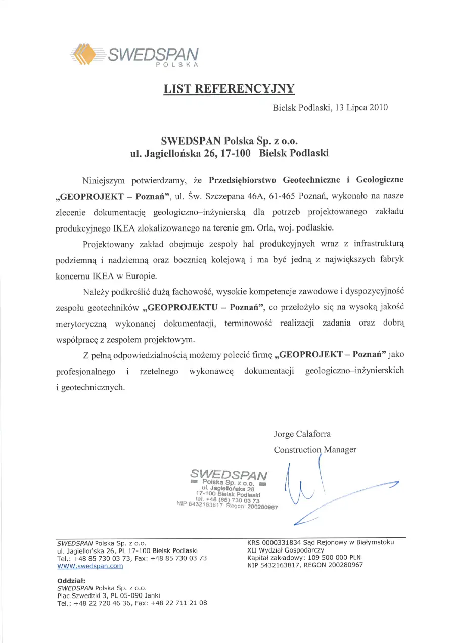 Ponadto stale współpracujemy z ekspertami z dziedziny geotechniki z Uniwersytetu im. Adama Mickiewicza w Poznaniu.