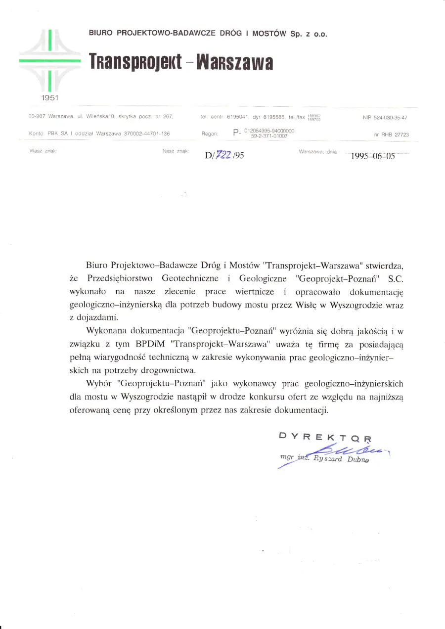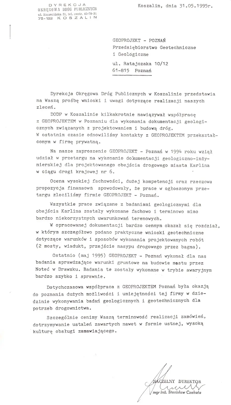 W 1992 r., po przekształceniach własnościowych, powstała firma "Geoprojekt - Poznań" Przedsiębiorstwo Geotechniczne i Geologiczne, kontynuująca najlepsze tradycje firmy państwowej, jednak zasięgiem działania obejmująca całą Polskę.