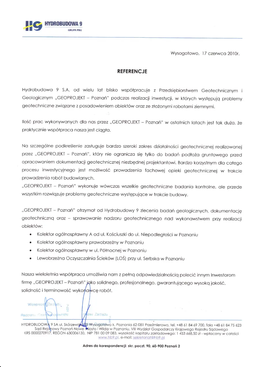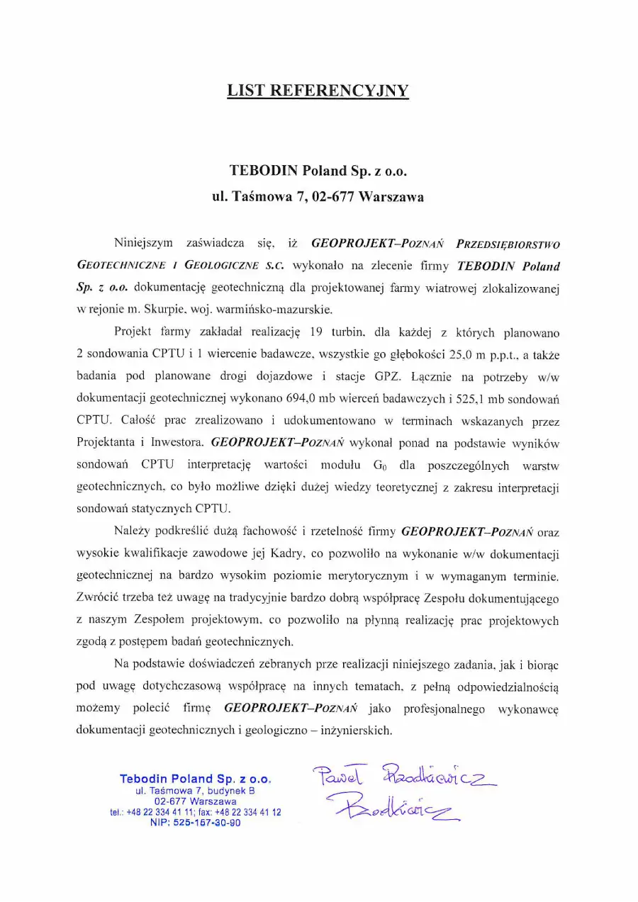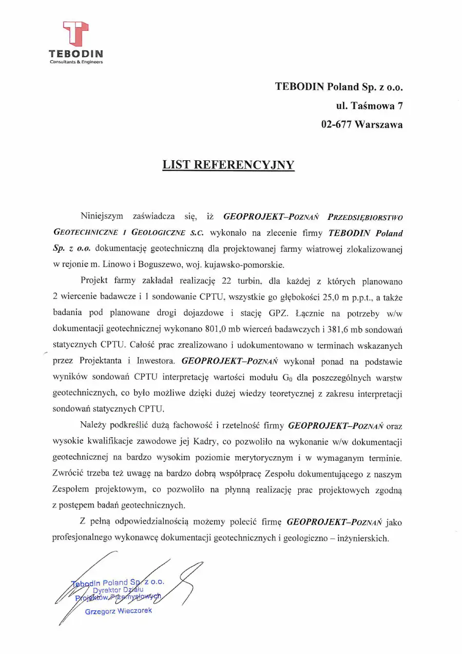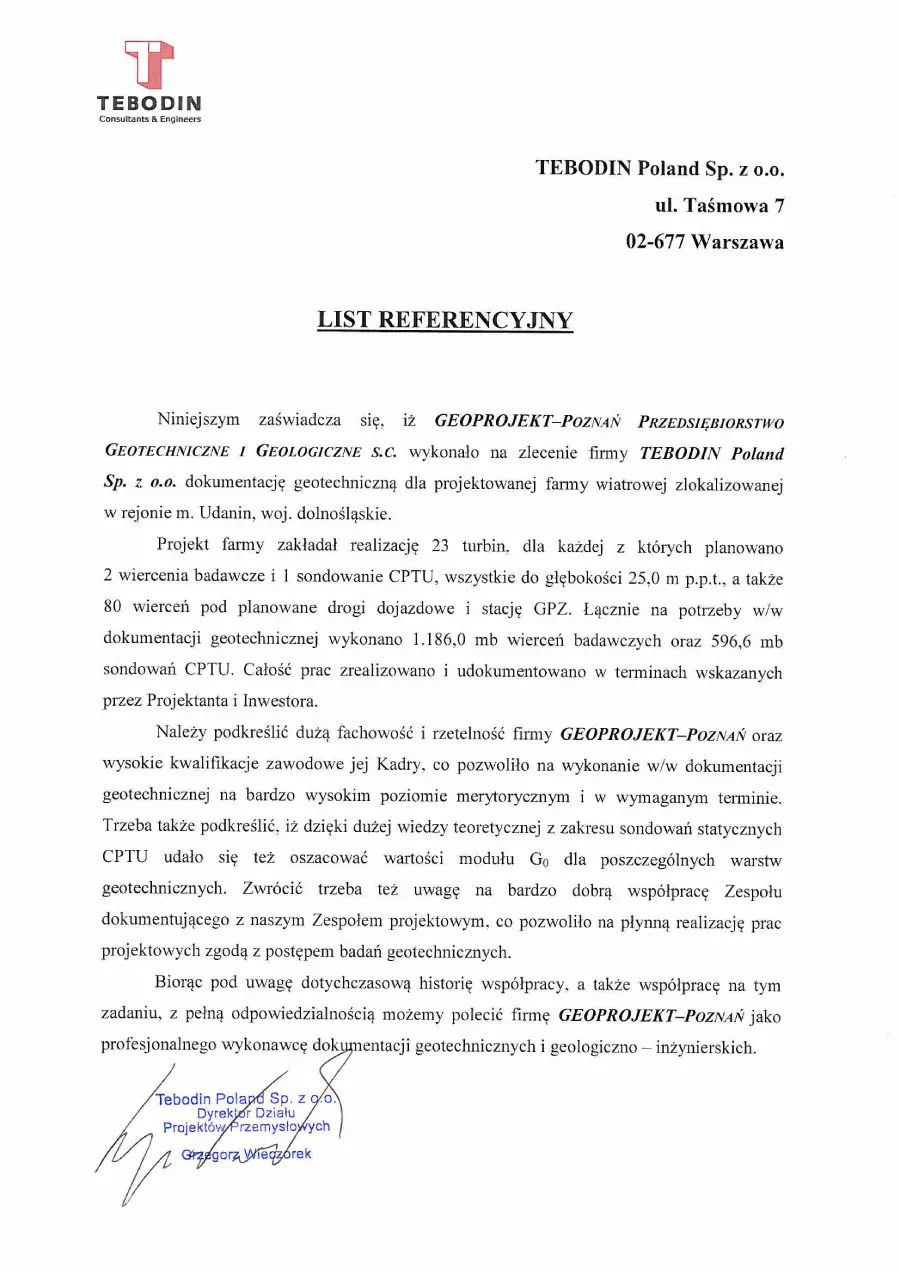 Ponadto stale współpracujemy z ekspertami z dziedziny geotechniki z Uniwersytetu im. Adama Mickiewicza w Poznaniu.
