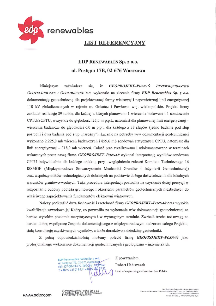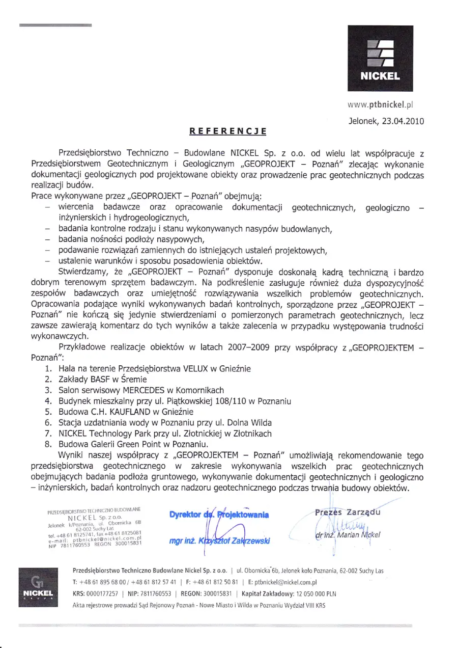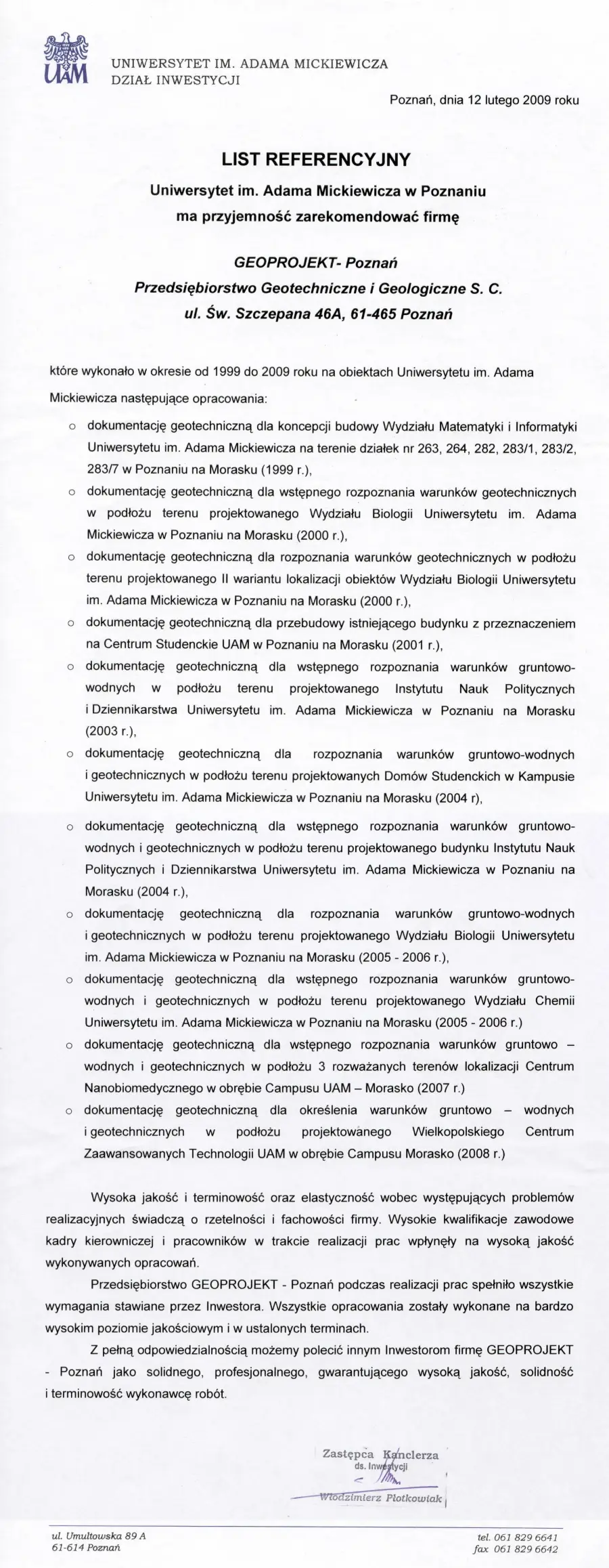 Ponadto stale współpracujemy z ekspertami z dziedziny geotechniki z Uniwersytetu im. Adama Mickiewicza w Poznaniu.