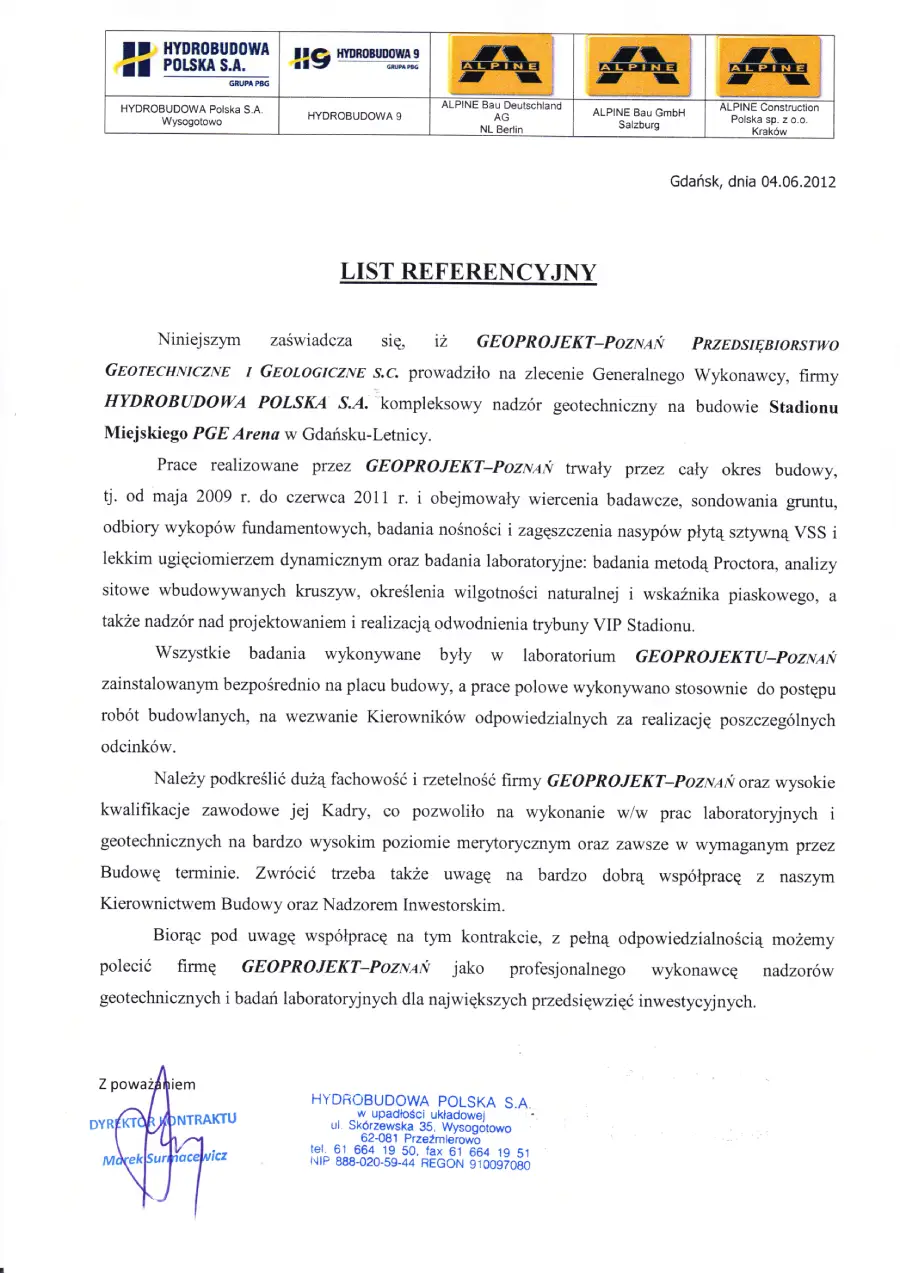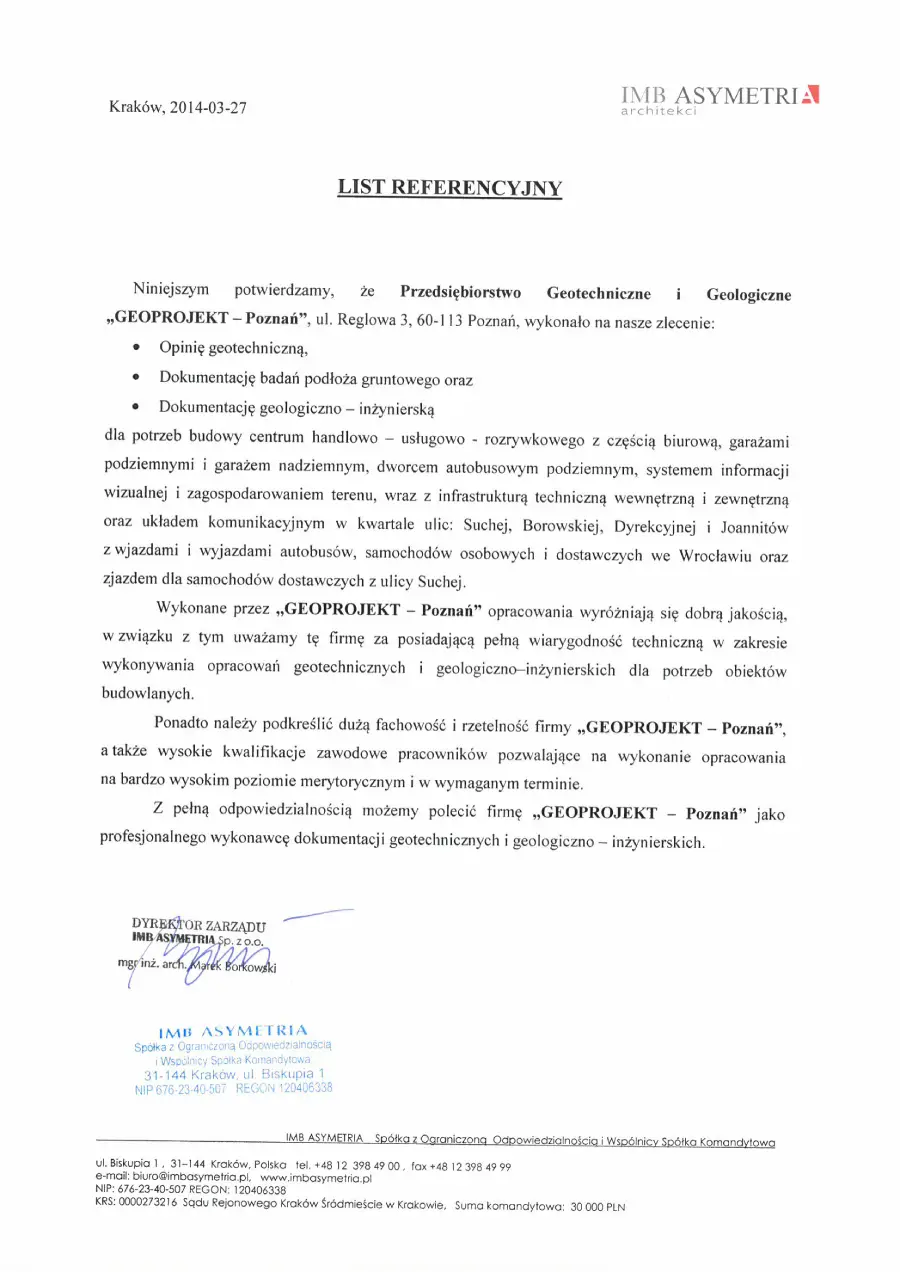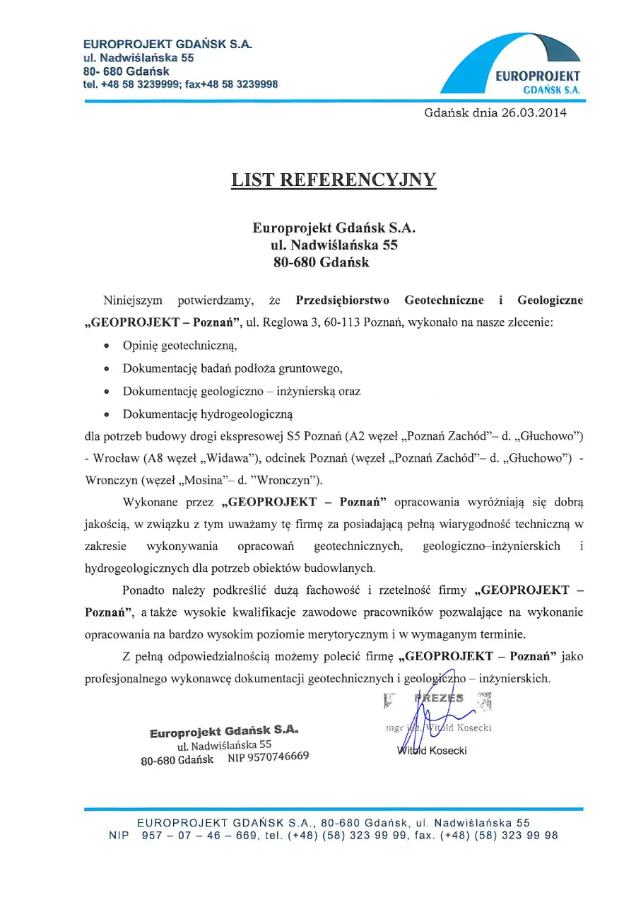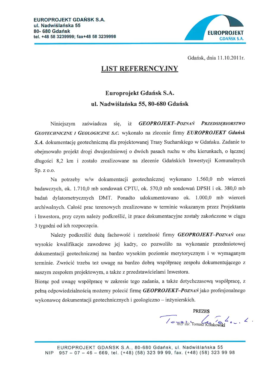Ponadto stale współpracujemy z ekspertami z dziedziny geotechniki z Uniwersytetu im. Adama Mickiewicza w Poznaniu.