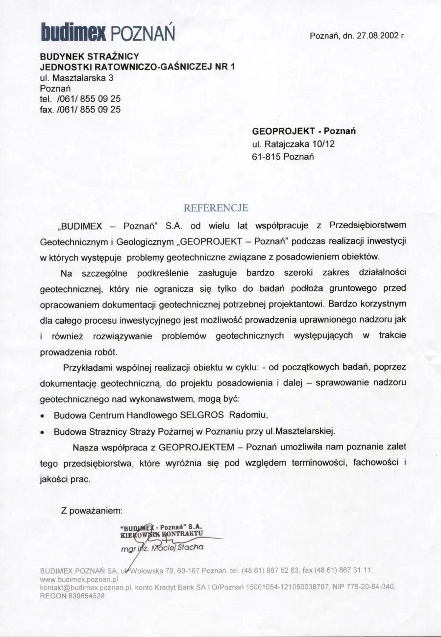 W 1992 r., po przekształceniach własnościowych, powstała firma "Geoprojekt - Poznań" Przedsiębiorstwo Geotechniczne i Geologiczne, kontynuująca najlepsze tradycje firmy państwowej, jednak zasięgiem działania obejmująca całą Polskę.